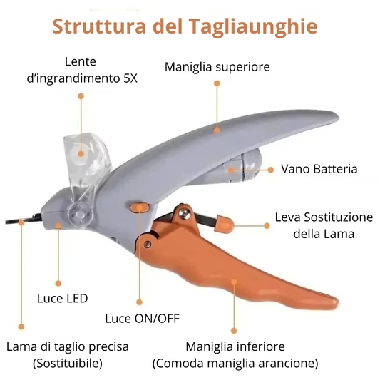 Tagliaunghie Professionale con LED e Lente Ingrandente